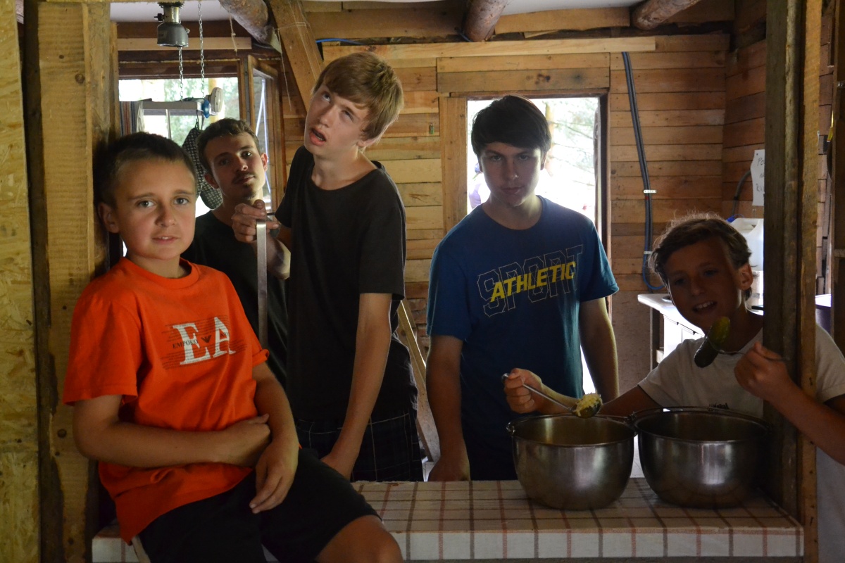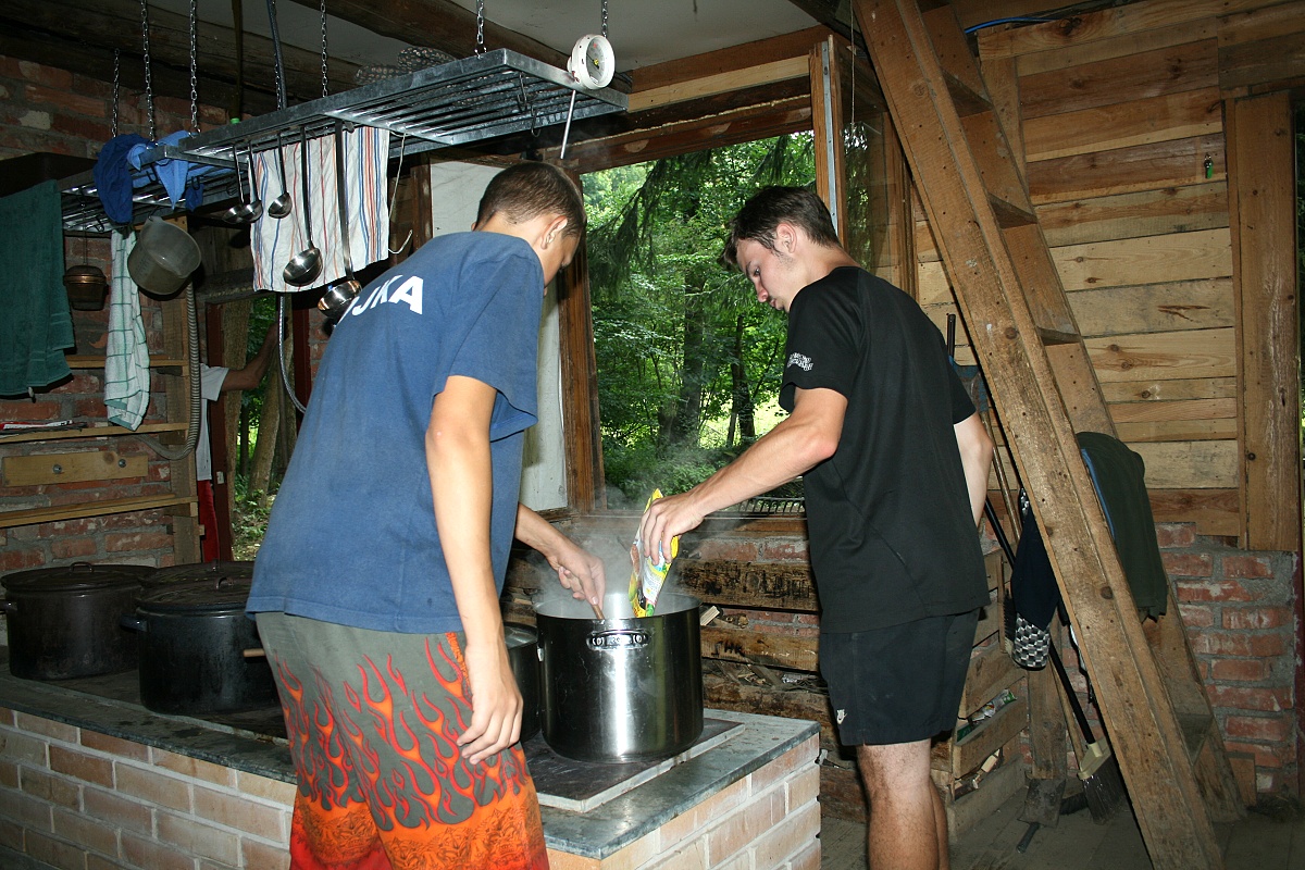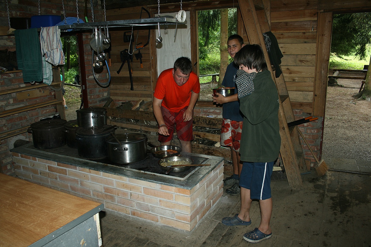 Kuchyňskou s přehledem vyhrávají Rysi. Zásluhu na tom má především rádce Sochor – vládnoucí rukou silnou a nekompromisní. Ale i ostatní družiny se činily, což si táborový hospodář pochvaloval. A kdyby byl Sněžka důraznější, nemusela jeho družina skončit na třetím místě. Jídlo bylo poživatelné, často i chutné, což dokládalo minimum bioodpadu a především práce Dany a Kavky – vždy tak nenápadně odchycených! Jen ten pořádek býval kdysi lepší – nemám na mysli hygienu v kuchyni, ale prostor kolem TVRZE, zásoba dřeva, úklid dřevníku a jiné „ záškrabové věcičky". Ale to je dáno asi tím, že Antek už několik let nepoužívá systém mínusových karet, což veteráni hlasitě připomínkovali!
