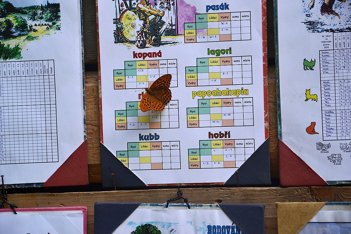 Bodování stanů opanovala dvojice Lišáků – Nadík a Sky, druzí byli Sněžka a Švejk od Vyder, třetí opět Lišáci – Runy a Twist. („Tak už víš, proč nechci obývat stan se Sněžkou, protože on má vždy pět bodů a mně vždy něco najdou, tak tu pětku nemohu dostat!“ vysvětloval Dodo Štěpkovi). Jedenáct táborníků získalo malé bílé orlí pero – vzorný stan na táboře.