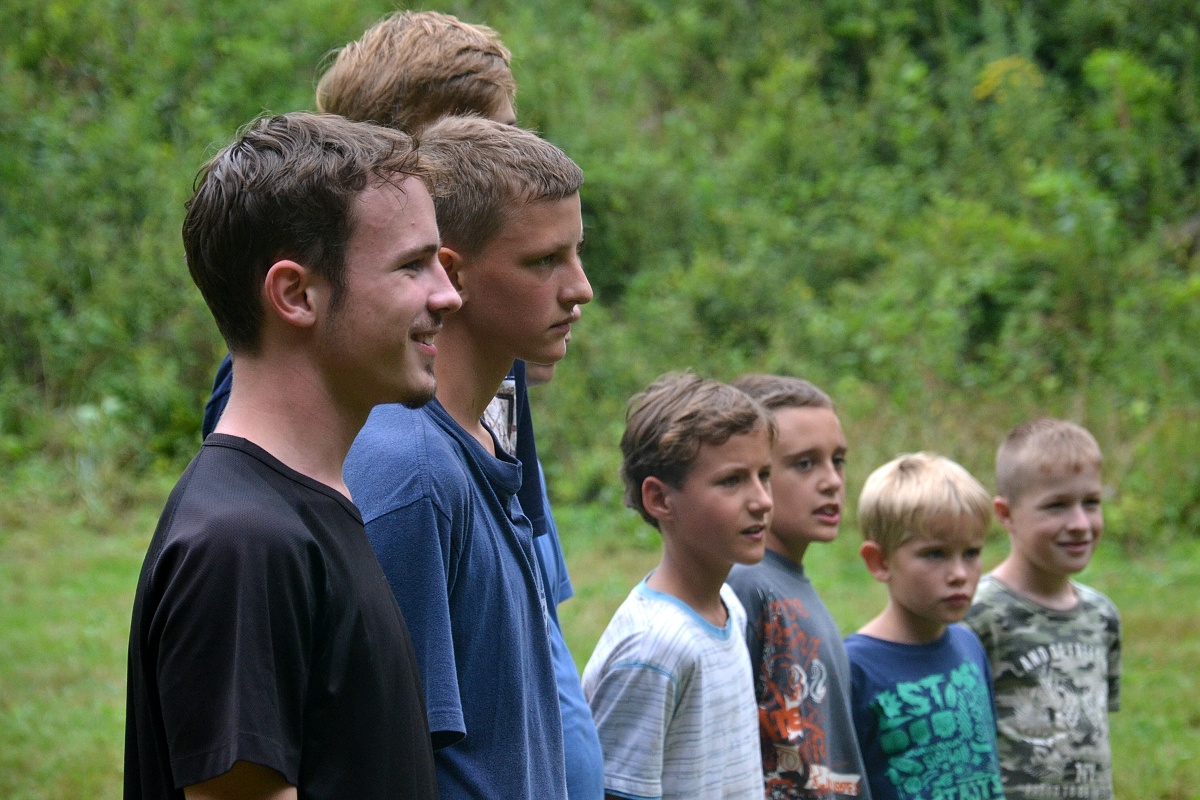 Už na pracovní výpravě koncem června projevil Kassa přání, aby jeho sedm družiníků bylo ve stejné družině. V diskusi na těchto stránkách jsme před táborem nevyřešili nic. Do poslední chvíle nedali o sobě vědět Vendy a Špejlík od Vyder. Překvapivě opět nejede Jack od Lišáků, Spider hlásí, že pojede na jiný tábor, a „druhákům“ Sobíkovi, Kudlovi a Žužlovi jsme po vzájemné dohodě doporučili, aby rok ještě počkali. Tak by se nejmladším naším táborníkem stal Martin - Rychlonožka, neboli „Ryžka", ale i jeho rodiče na poslední chvíli „cukli“. Nedá se nic dělat, bude nás lichý počet: šestnáct chlapců z Karviné, sedm hochů z Olomouce.