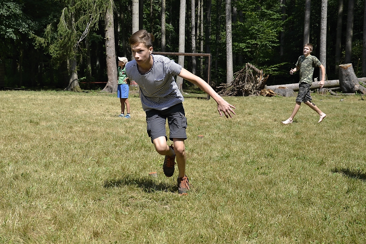 Kopaná – Stavby hřiště se ujal Saly Autové čáry byly nastříkány signální barvou, v rozích a ve středu postranních čar se třepotaly signální vlajky. Ale těm nebyla věnována taková důslednost a praporky se více válely po zemi než aby něco vytyčovaly. Žádná táborová služba je nebyla sto pořádně upevnit do země. Kopanou hrajeme tradičně dva poločasy po půl hodině. Poločas je rozdělen na další dvě půle kdy mezi sebou hrají Trojčata a po čtvrt hodině jsou vystřídány Trojkaři. To abychom se nepokopali a nepostrkali. Přeci jenom louka není tak veliká, abychom na ní vypustili dvě fotbalové jedenáctky. Zajímavější byly zápasy mladších. Letos jsme po dlouhé době opět používali barevné rozlišovací dresy, což hru zpřehlednilo. Zajímavostí byly dva zápasy o návštěvním víkendu které pískal Dino – profesionální sudí. A tak se mnozí hráči naučili jak správně házet aut, co to je „hraní rukou“ a Tříska se například dozvěděl co je to ofsajd. (Dino také přivezl několik zánovních fotbalových míčů, které věnoval oddílu). Turnaj vyhráli Rysové.