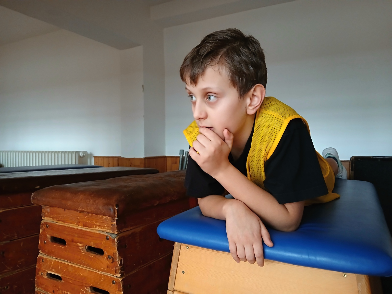 - Buben nechal v šatně batoh a odfičel na koloběžce. Zastižen v Bille na telefonu - batoh mu vzal Čedar.