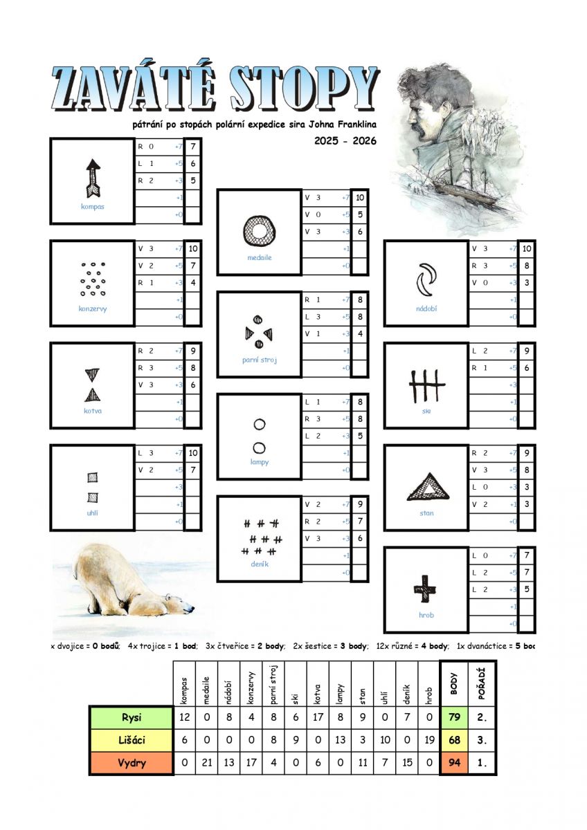 - Zaváté stopy - celkové hodnocení je v přiložené tabulce