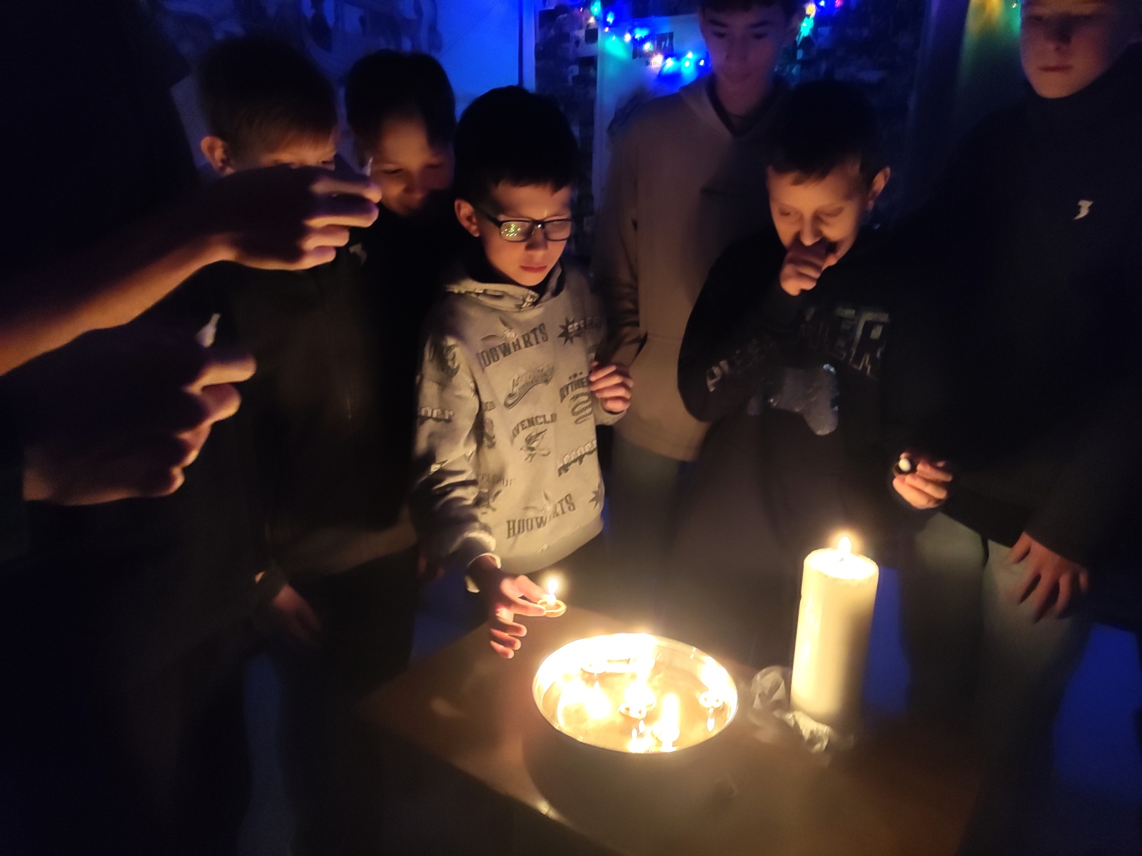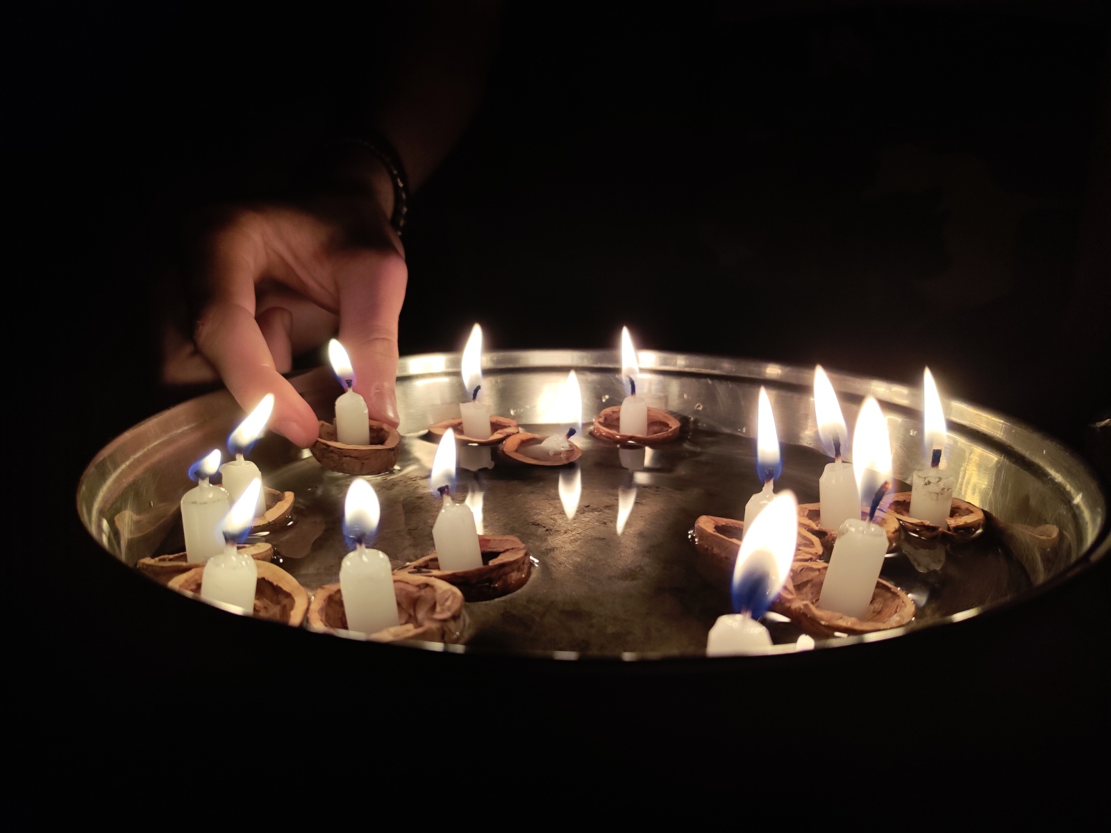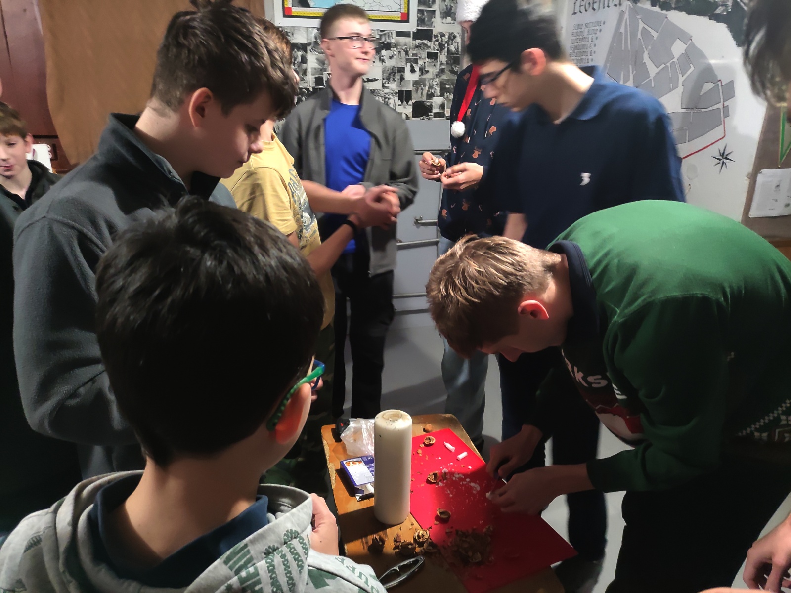 Poté jsme se věnovali tradičním vánočním zvykům. Lili jsme olovo a z jeho tvarů se snažili odhadnout, co nás v příštím roce čeká. Také jsme vyráběli lodičky z půlek ořechů a svíček, které jsme pouštěli po vodě a sledovali, kdo se s kým spojí, kdo zůstane stát a kdo odpluje pryč.