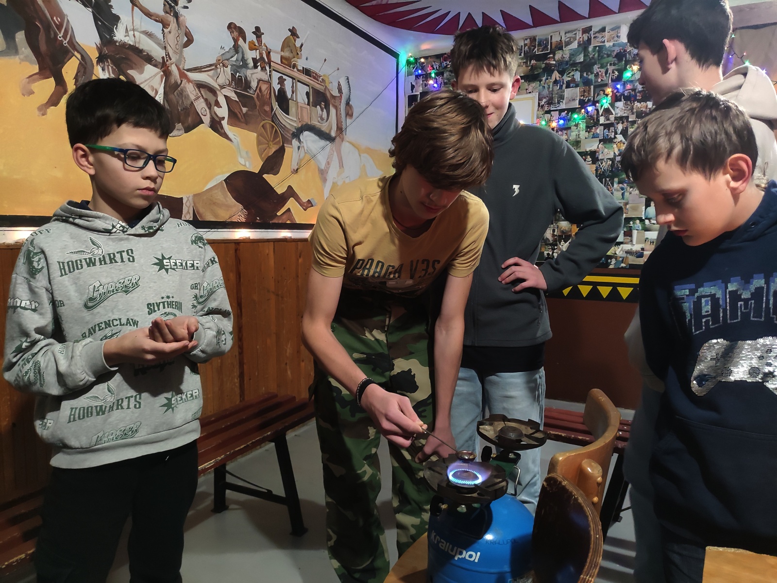 Na začátku akce jsme si na projektoru promítali stará oddílová videa z různých táborů a akcí. Společně jsme zavzpomínali na zážitky z minulých let a pobavili se u starších záběrů.