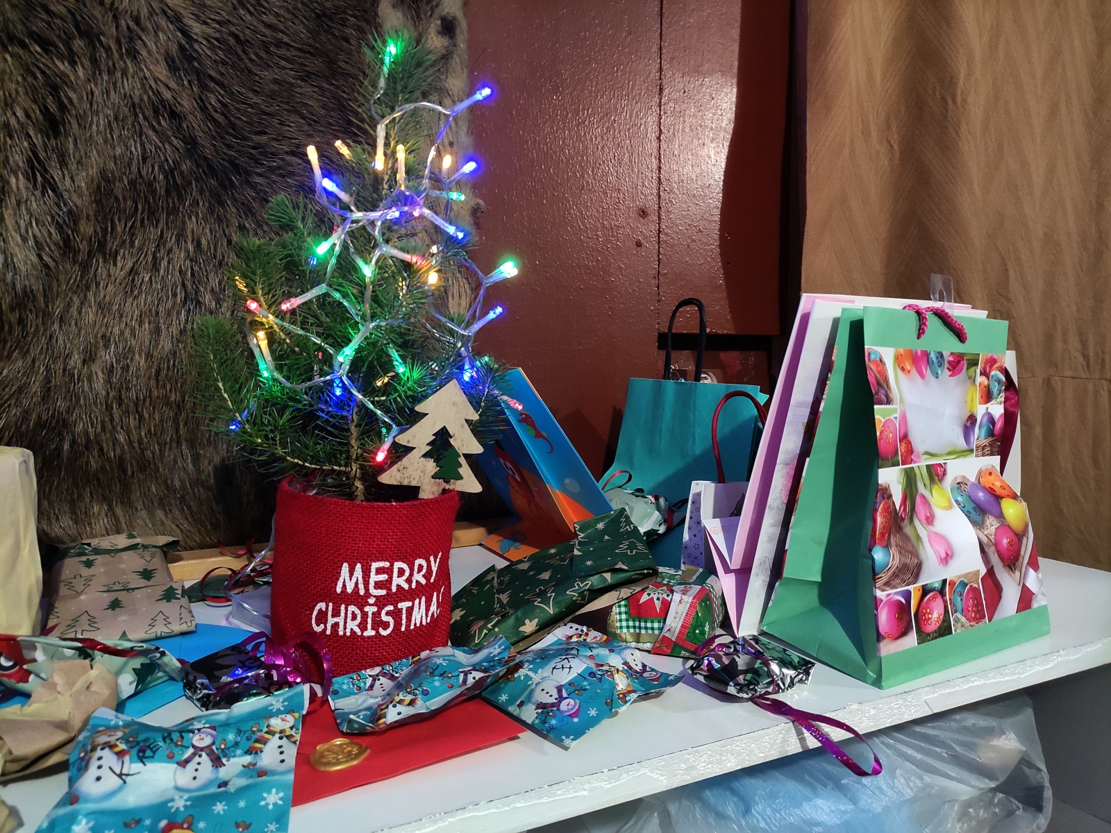 Po olympiádě jsme se přesunuli ke stromečku. V klubovně byl připraven malý ozdobený vánoční stromeček, pod který každý člen oddílu přinesl tři drobné dárky pro ostatní – ručně vyrobené nebo koupené. Podle umístění ve Vánoční olympiádě si pak všichni postupně vybírali své dárky.