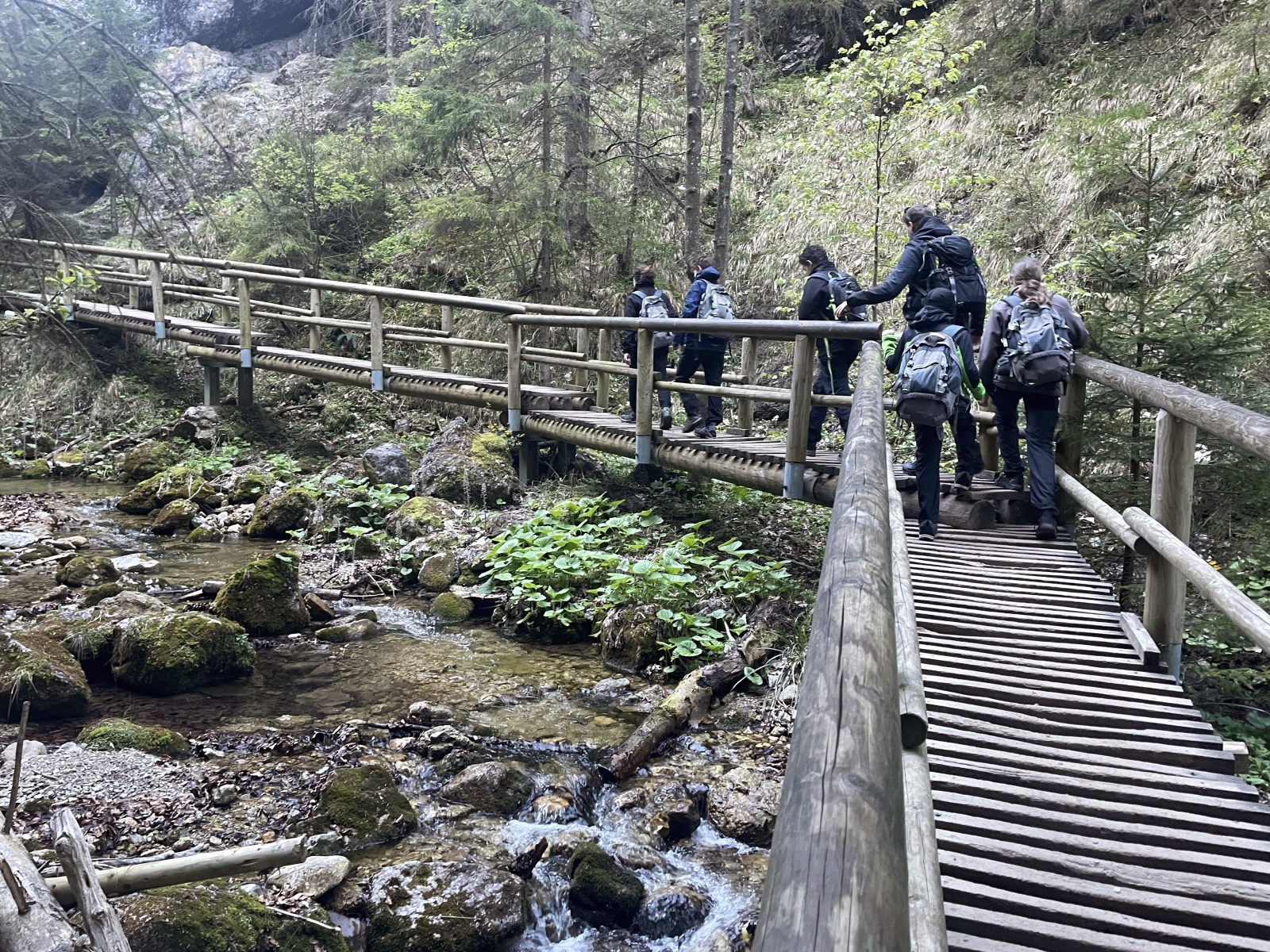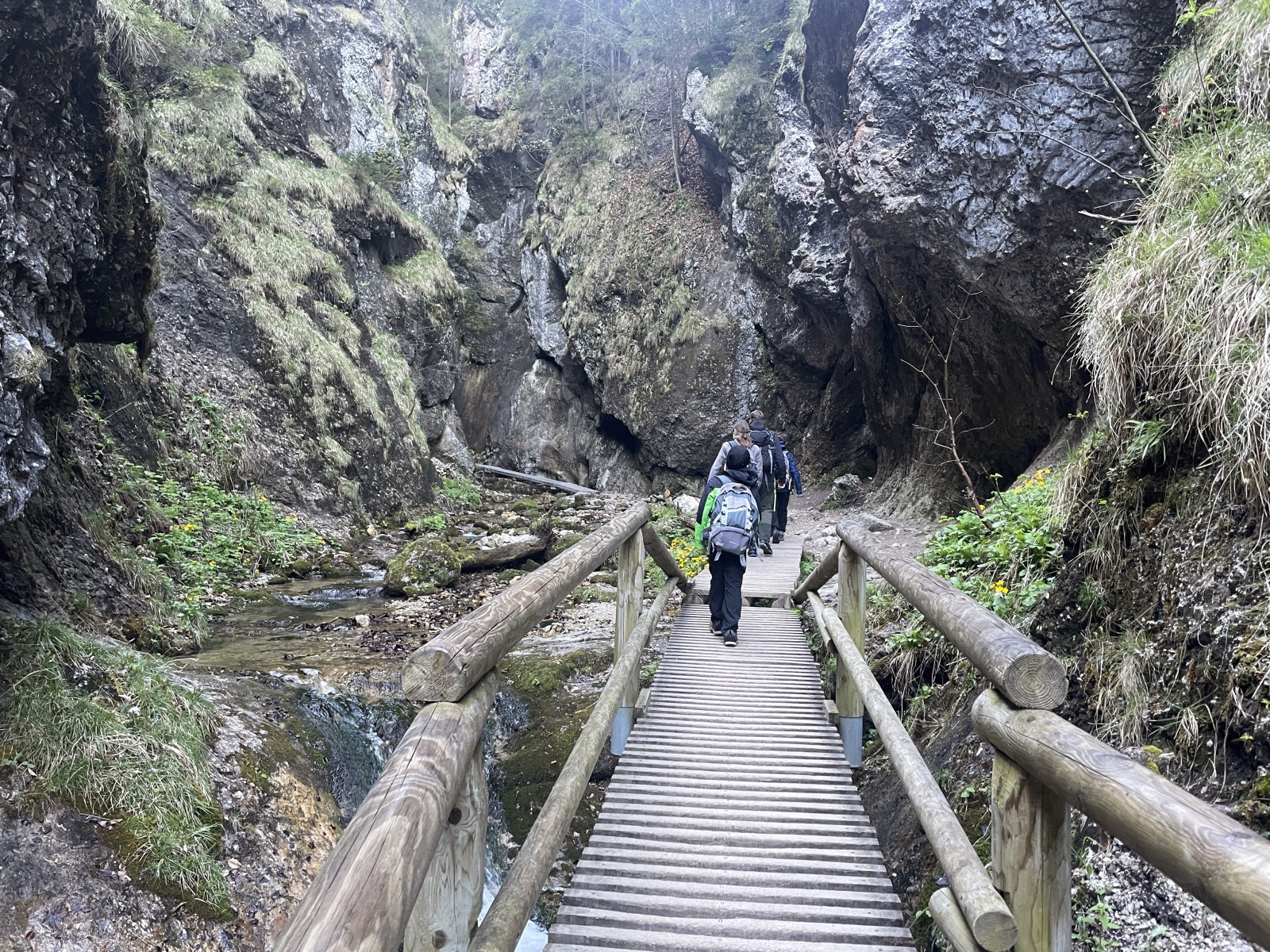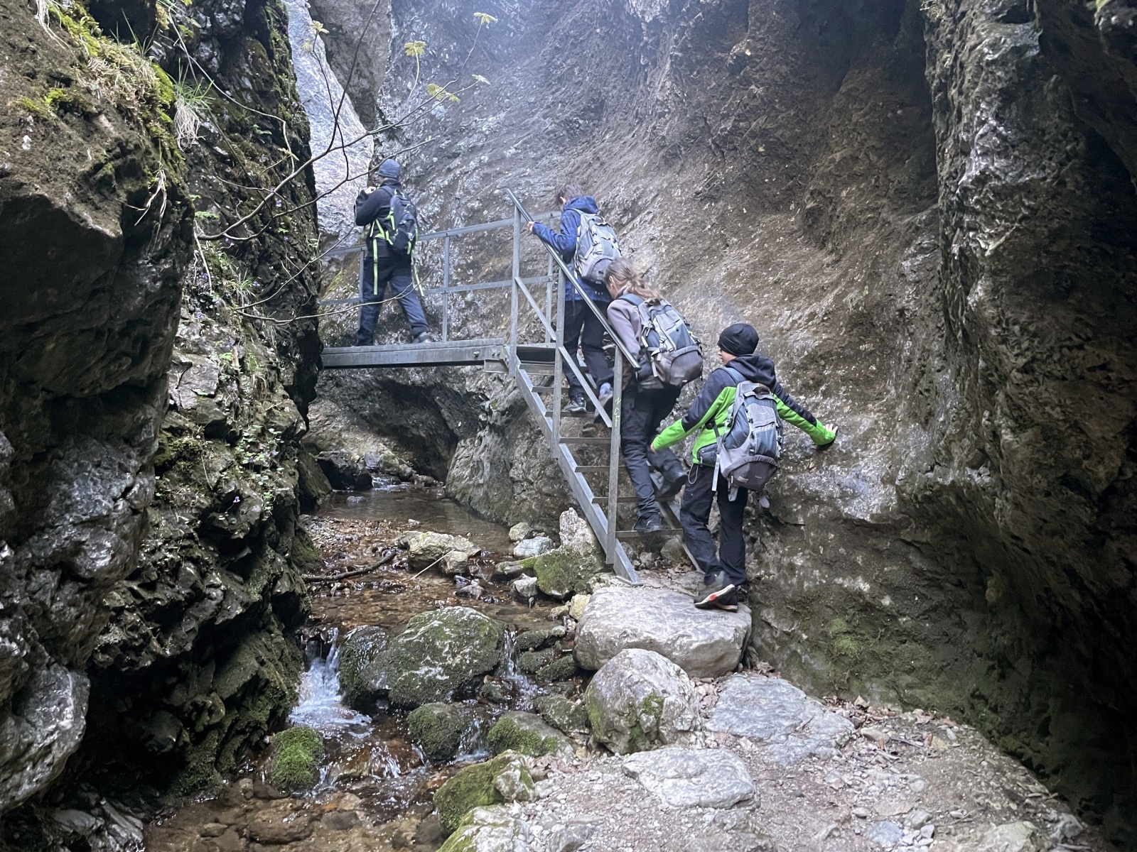 Nastupujeme na další kaskády a žebříky korytem Hlbokého potoka. Počet turistů začíná narůstat, ale nic dramatického. Prostor na focení je, občas někoho pustíme před nás.