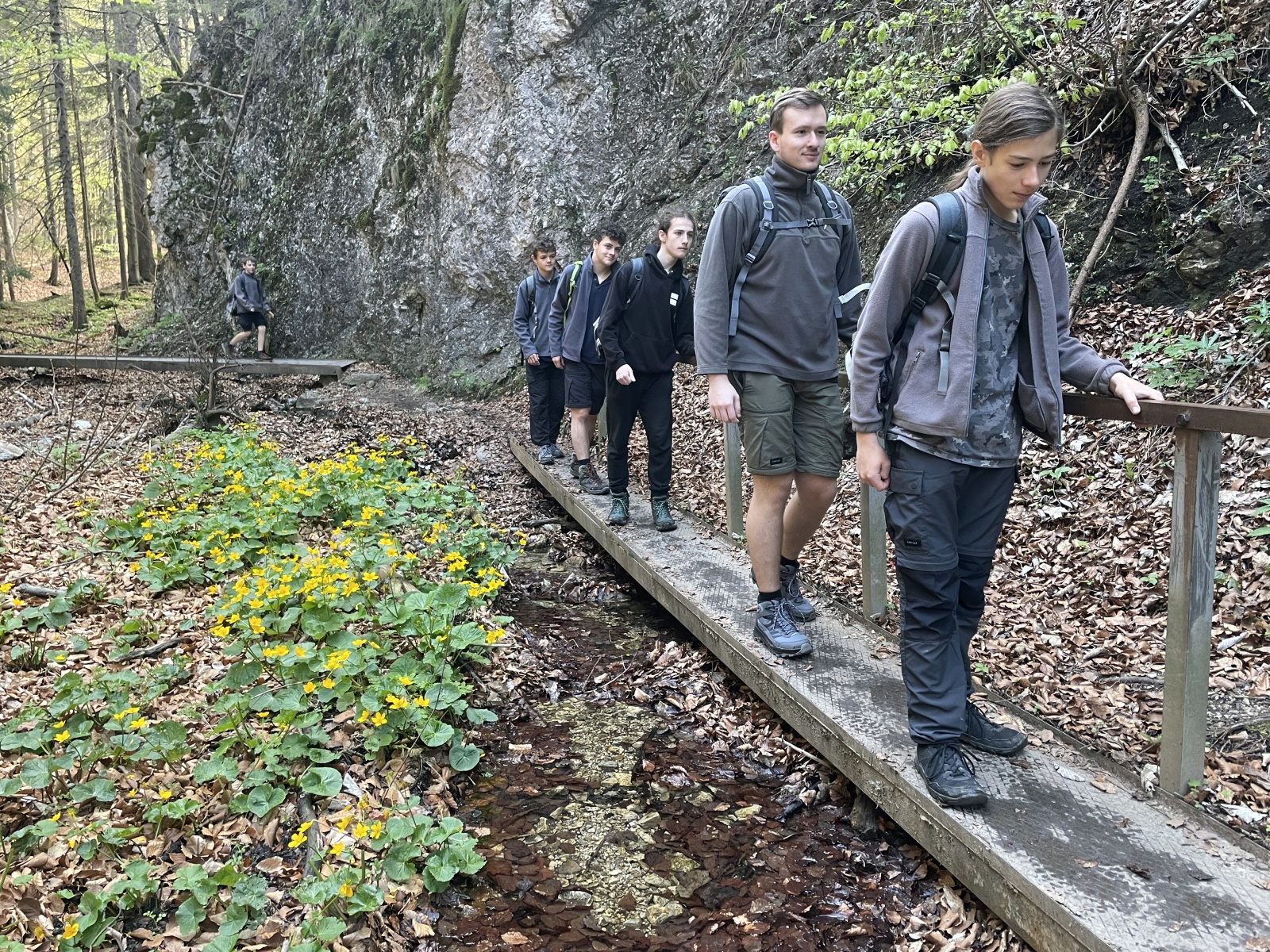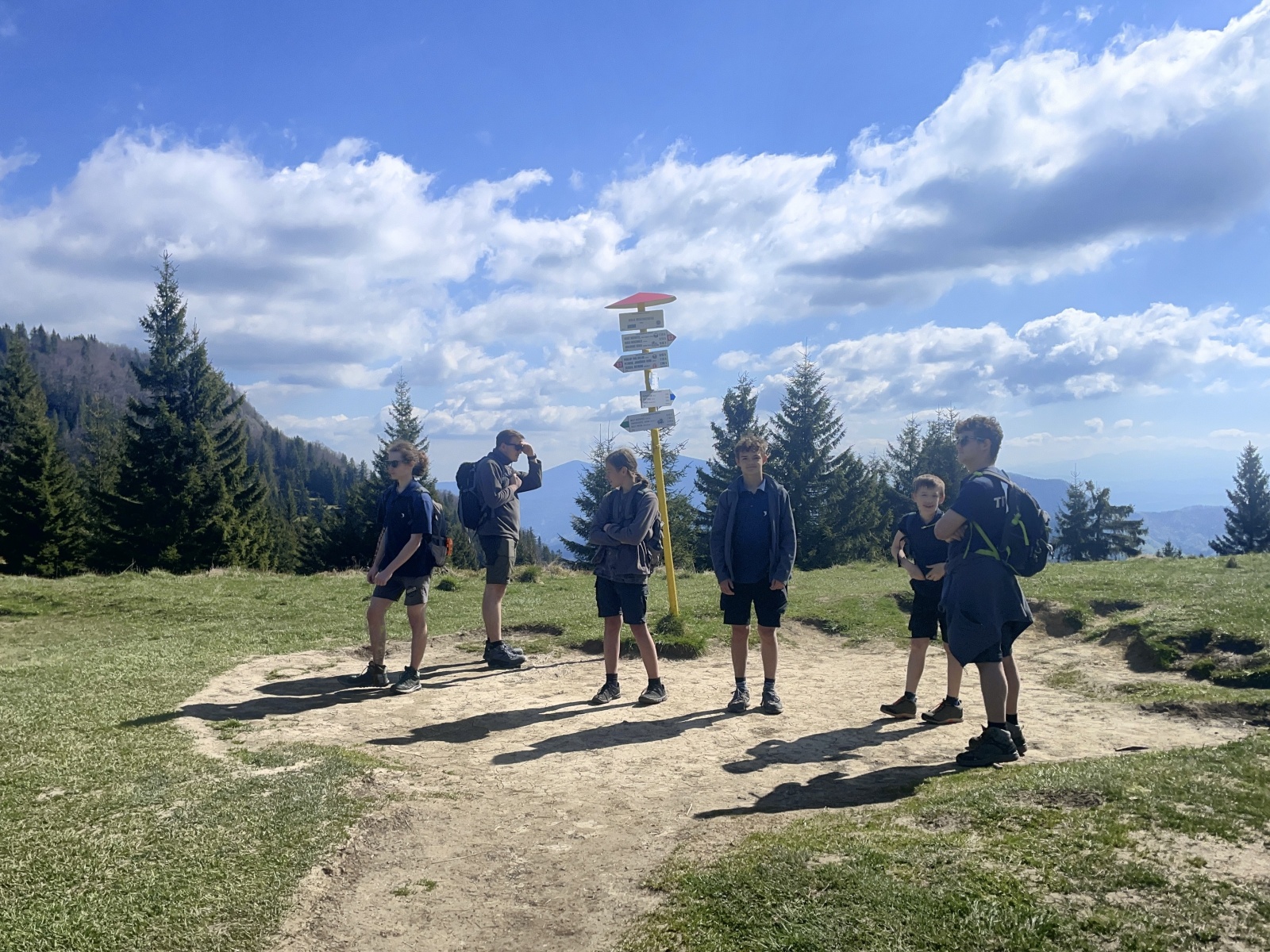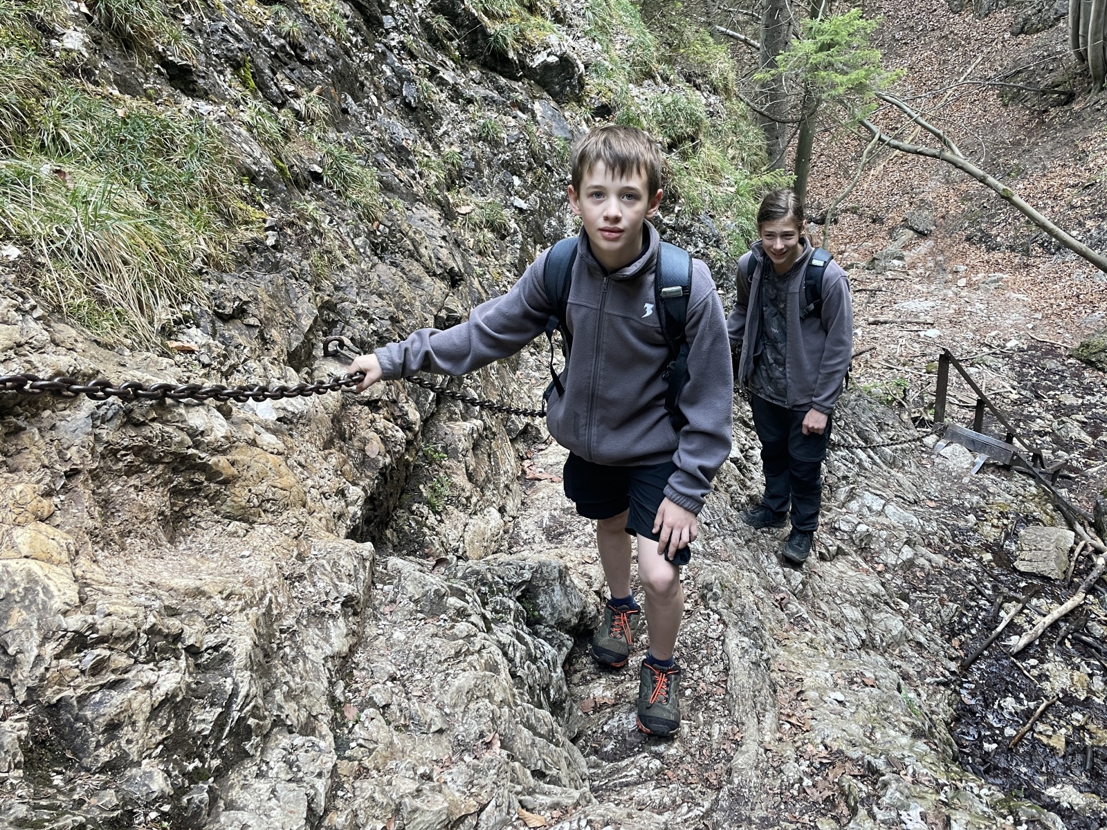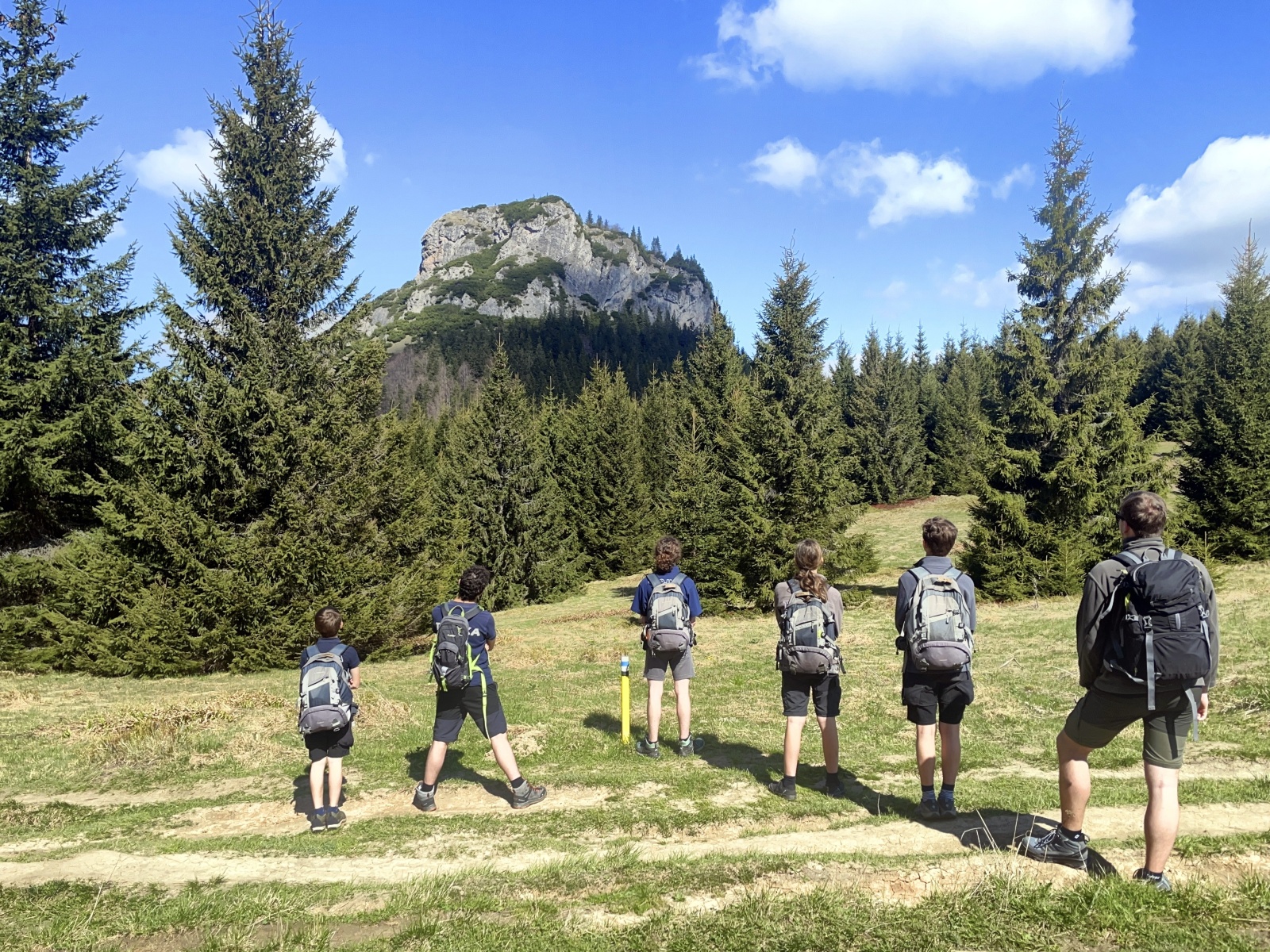 Příliš strmé, příliš kamínků, které uklouzávají a postupně turisté, většinou Poláci, v protisměru. V životě jsem touto cestou nešel nahoru, je to asi nejhorší varianta, která se dá zvolit. Kubka, Honza a Talík si prozpěvují nějaké písně z minecraftu. Asi aby vytočili funějící turisty, kteří se plahočí proti nám. U jednoho stromu se zeptám Talíka na jeho název. Tak dub, buk ani smrk to není, nevím, asi Řehoř. Nevím, jestli si ten chlapec dělá srandu ze mě, nebo opravdu neví. Ale nepoznat lípu to je ostuda. U dalšího stromu řekl, že to je Jarek Maďal. Vtipálek.