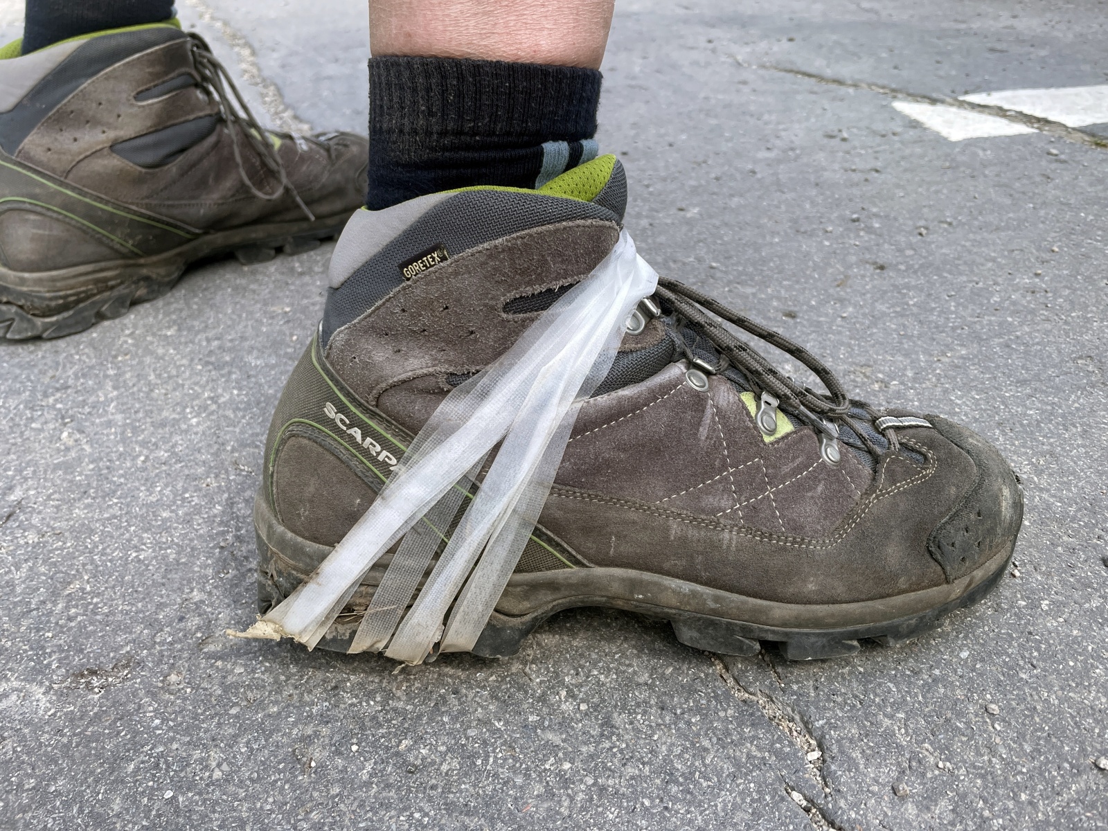Moje boty značky Scarpa. Dohledávám podle fotek, jak dlouho je mám. První výprava, na kterých byly: Julské Alpy – září 2015. Téměř deset let. To už měly nárok protestovat. Já neprotestuji a děkuji. Koupím si stejnou značku, vlastně už potřetí. Ty první vydržely pět let.