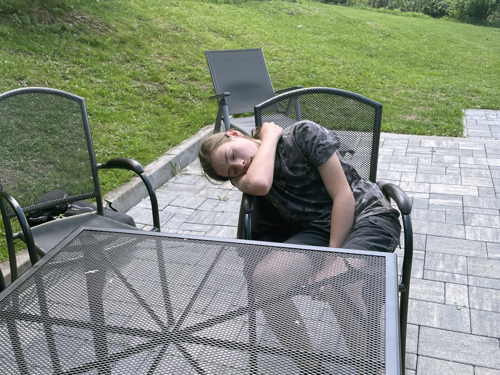 Dáváme si kofolu, Mýval nanuk a Kubka kapustnicovou polévku. Postupně také tři langoše. Nejprve nás odradila cena 8€. Hlad, spíše chuť tuto cenu překonala. Obří, na pizza talířích. Šmakovalo všem. Protože máme dobrý čas, volíme odpočinek s lehkým zdřímnutím.