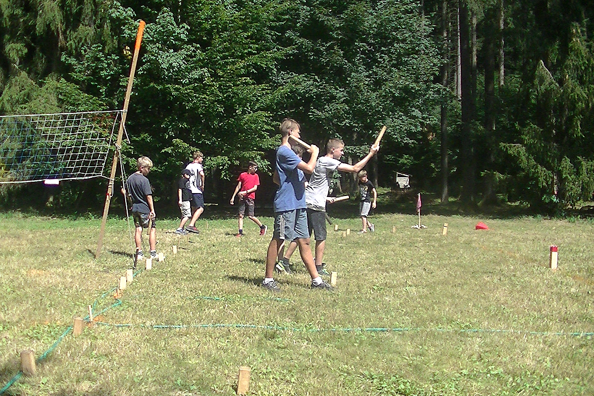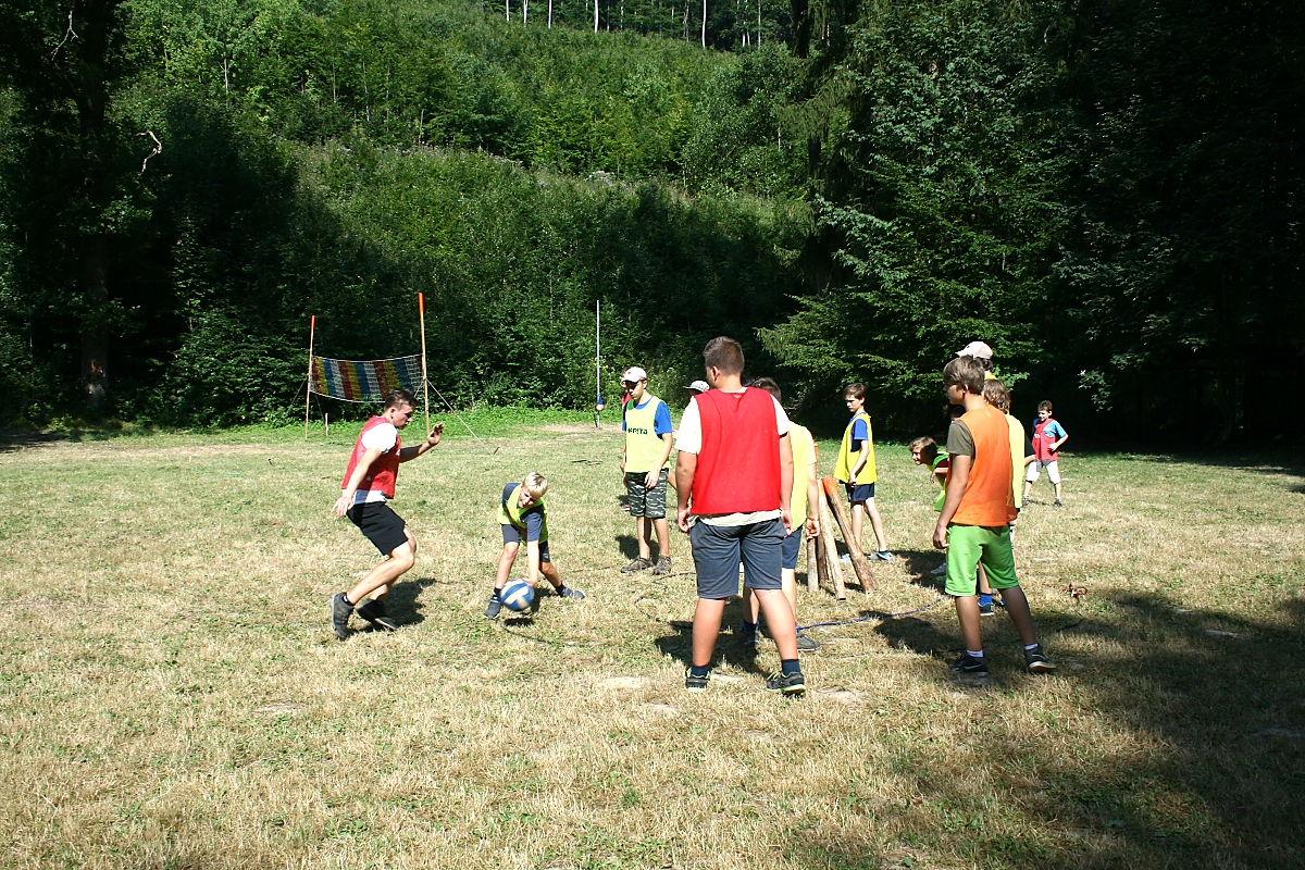 Kopaná – hřiště vytyčovali Kulajda a synové asi dva dny, nebo tak nějak podobně. Autové čáry byly nastříkány signální barvou, v rozích a ve středu postranních čar se třepotaly signální vlajky. Naprostá paráda. Při přestavbě hřiště (na jiné soutěže), nám pomohla lýková lana lesní školky, které kdosi – mně z neznámého důvodů, odvázal ze stromů u studny. Kopanou hrajeme tradičně dva poločasy po půl hodině. Poločas je rozdělen na další dvě půle kdy mezi sebou hrají Trojčata a po čtvrt hodině jsou vystřídány Trojkaři. To abychom se nepokopali a nepostrkali. Přeci jenom louka není tak veliká, abychom na ní vypustili dvě fotbalové jedenáctky. Zajímavější byly zápasy mladších. Letos jsme po dlouhé době opět používali barevné rozlišovací dresy, což hru zpřehlednilo. Turnaj vyhráli Rysové.