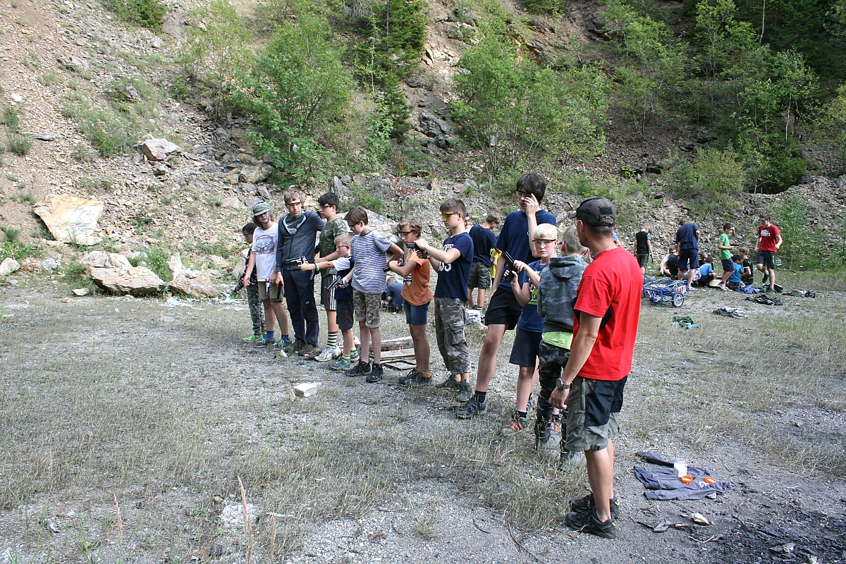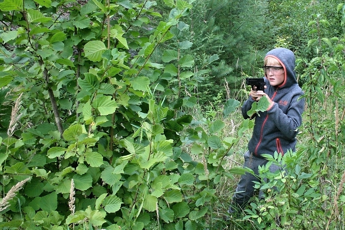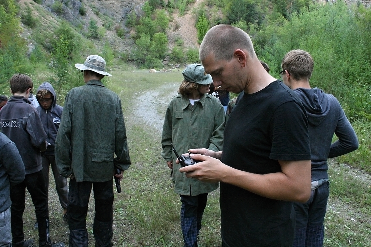 „Torpédo“ je naloženo kulometnými bednami se zbraněmi, střelivem a dalšími proprietami. Družiny nesou barely s vodou a proviant. Nejprve se odehrává hodinová přednáška o bezpečnosti při airsoftu (ASF), neboť se bude „bojovat“ airsoftovými pistolemi. Následuje výcvik ve střelbě, který řídí Kulajda, bývalý „airsofťák“, dnes zaměstnanec MNO. Pak už to šlo jako na drátkách, protože hoši byli dostatečně natěšeni. Jedna družina opanovala „srub“, další dvě družiny se jej snažily, v co nejkratším čase, dobýt tím, že „vystřílí“, ehm – vyřadí ze hry, obránce srubu. Kdo by zasažen, opouštěl herní prostor. Stopky se zastavují. Přebíjení zbraní, další družina se obrňuje ve srubu, signál k zahájení útoků. Do toho nám vesele hřmí, zatím naštěstí neprší, (ale nad táborem se mezitím přehnala taková „malá kapesní bouře“). Všemu přihlíží fotografové, kameramani, rozhodčí, kaplan a pilot „chrousta“ – dronu.